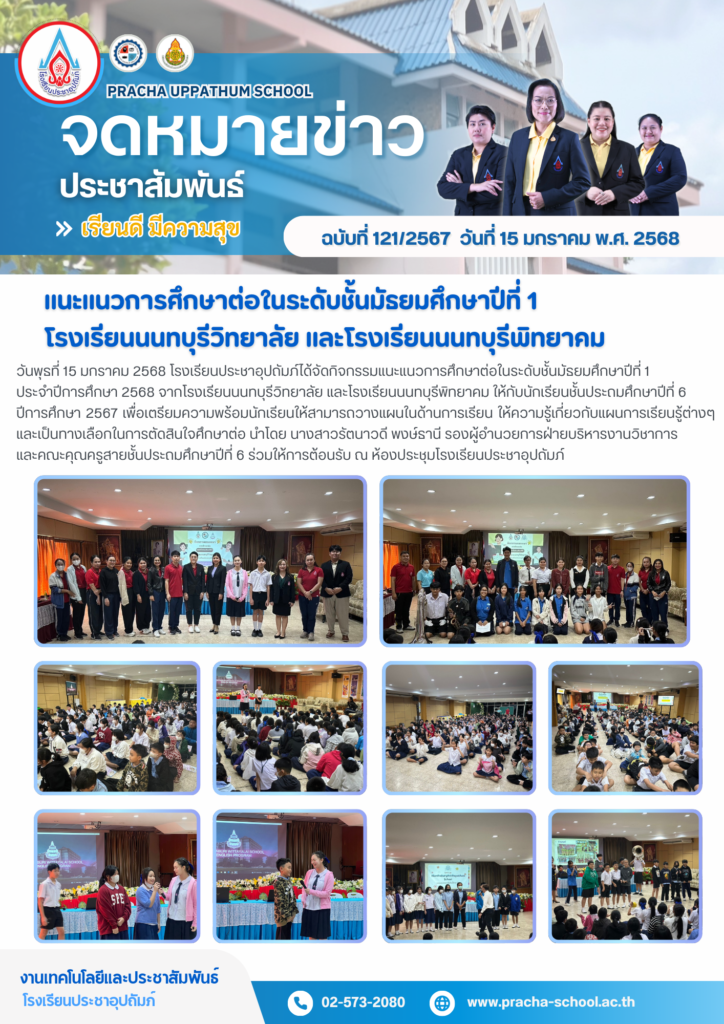 ฉ121 แนะแนวการศึกษาต่อระดับชั้นมัธยมศึกษาปีที่ 1 โรงเรียนนนทบุรีวิทยาลัย และโรงเรียนนนทบุรีพิทยาคม จดหมายข่าว / By anusorn