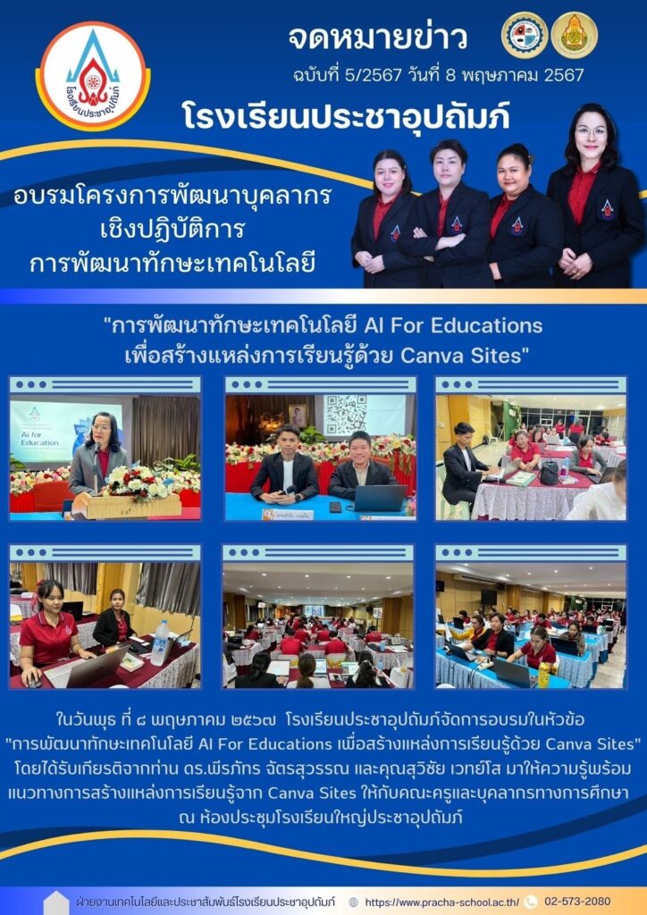 ฉ5 อบรมโครงการพัฒนาบุคลากรเชิงปฏิบัติการ การพัฒนาทักษะเทคโนโลยี “การพัฒนาทักษะเทคโนโลยี AI For Educations เพื่อสร้างแหล่งการเรียนรู้ด้วย Canva Sites” Leave a Comment / จดหมายข่าว / By anusorn